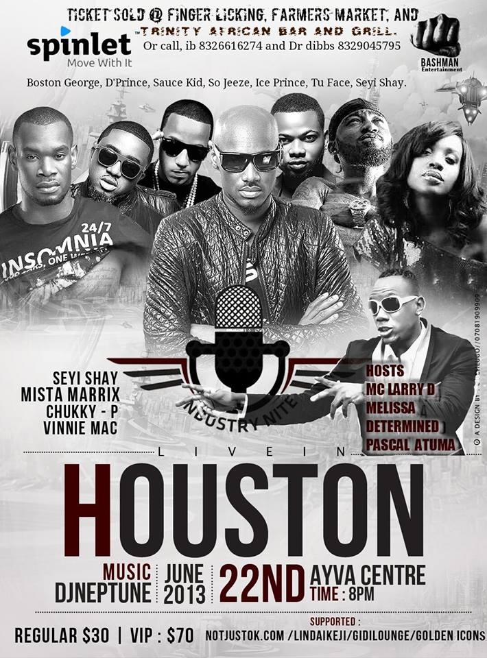 Spinlet Industry Nite gets to America with Performances by Tu Face, Seyi Shay, Ice Prince, D’Prince, Sauce Kid & more | Saturday 22nd June 2013